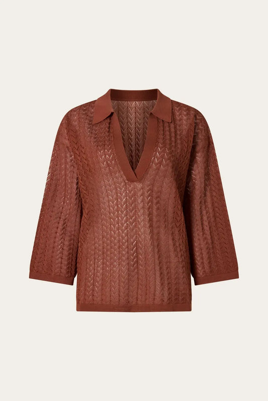 IMENE STRICKPOLO Pointelle-Strickpolo mit V-Ausschnitt
