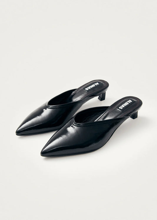 AusverkauftTESSA ONIX BLACK LEATHER MULES Alohas