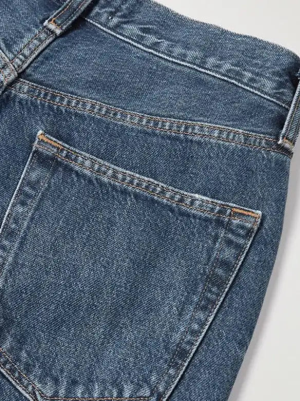 Sieht aus wie: Vintage-Medium-Indigo-Denim mit V-förmiger Bundhöhe