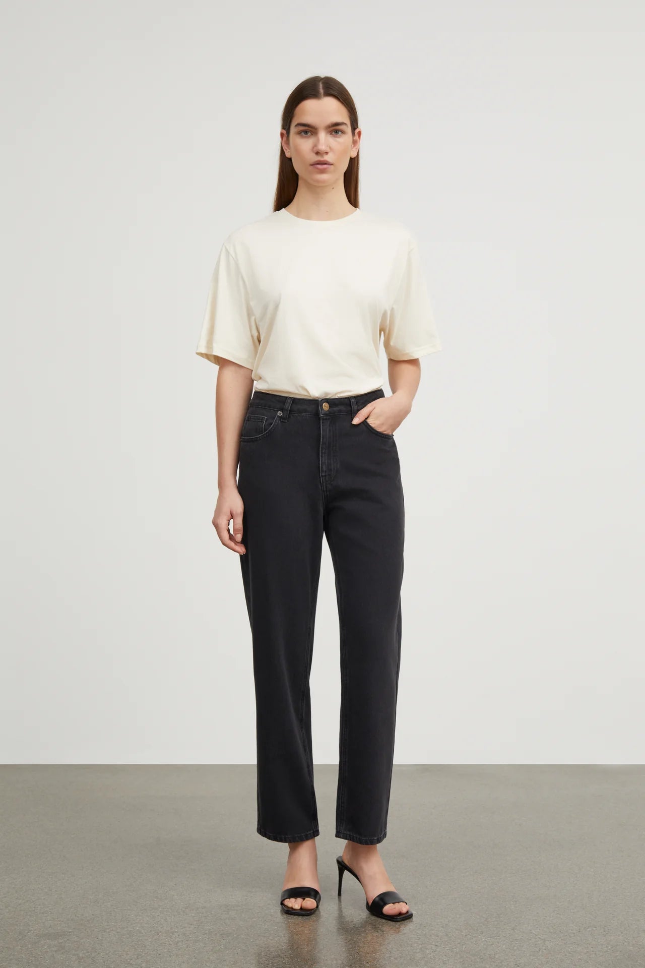 Das T-Shirt besteht aus 100 % Bio-Baumwolle und gehört zu den klassischen Styles. Es hat eine übergroße und bequeme Passform.