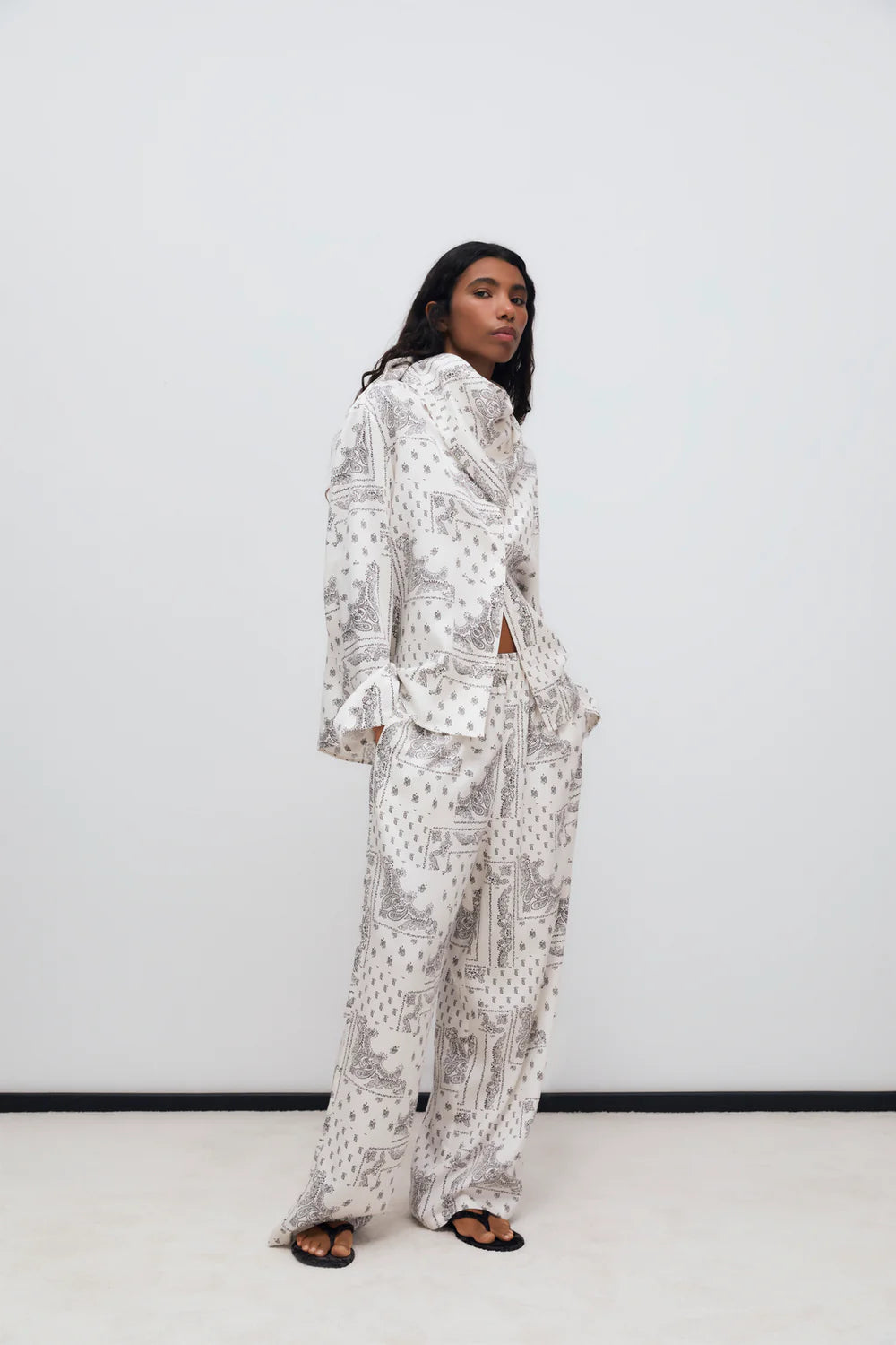 Dieses Hemd aus nachhaltigem Tencel besticht durch einen wunderschönen Bandana-Print, eine Frontöffnung mit Ton-in-Ton-Knöpfen und einen Reverskragen. Kombinieren Sie es mit der passenden Bluse für einen harmonischen, lässigen Look.