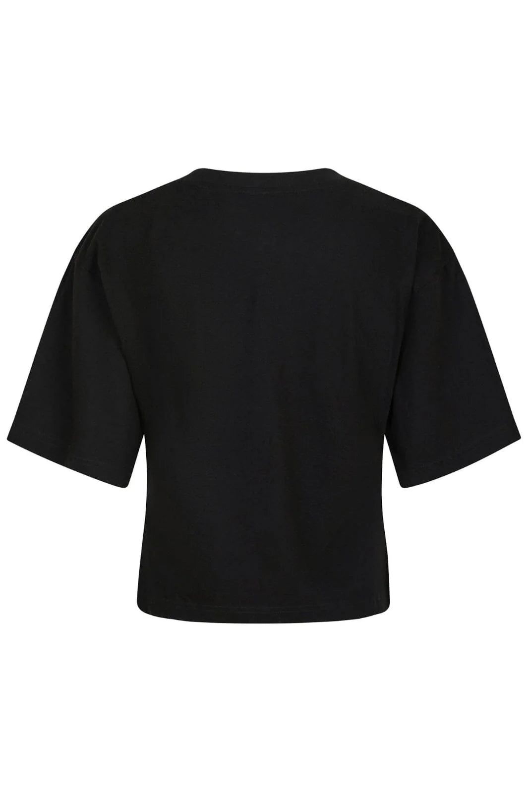chwarzes T-Shirt von Neo Noir mit boxy Passform. Das T-Shirt hat einen runden Halsausschnitt und kurze Ärmel. Die schwarze Farbe macht es einfach, mit anderen Farben zu stylen.