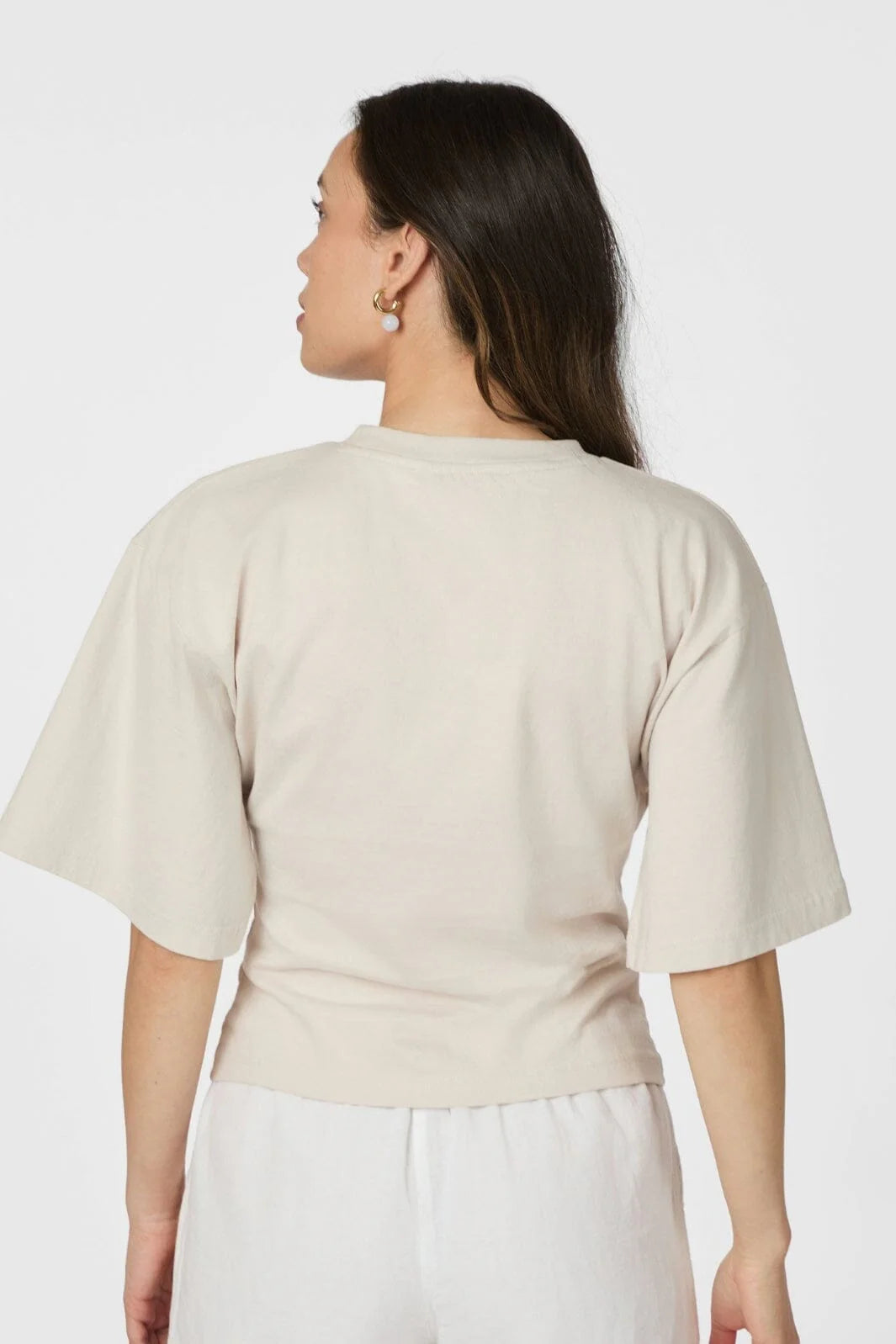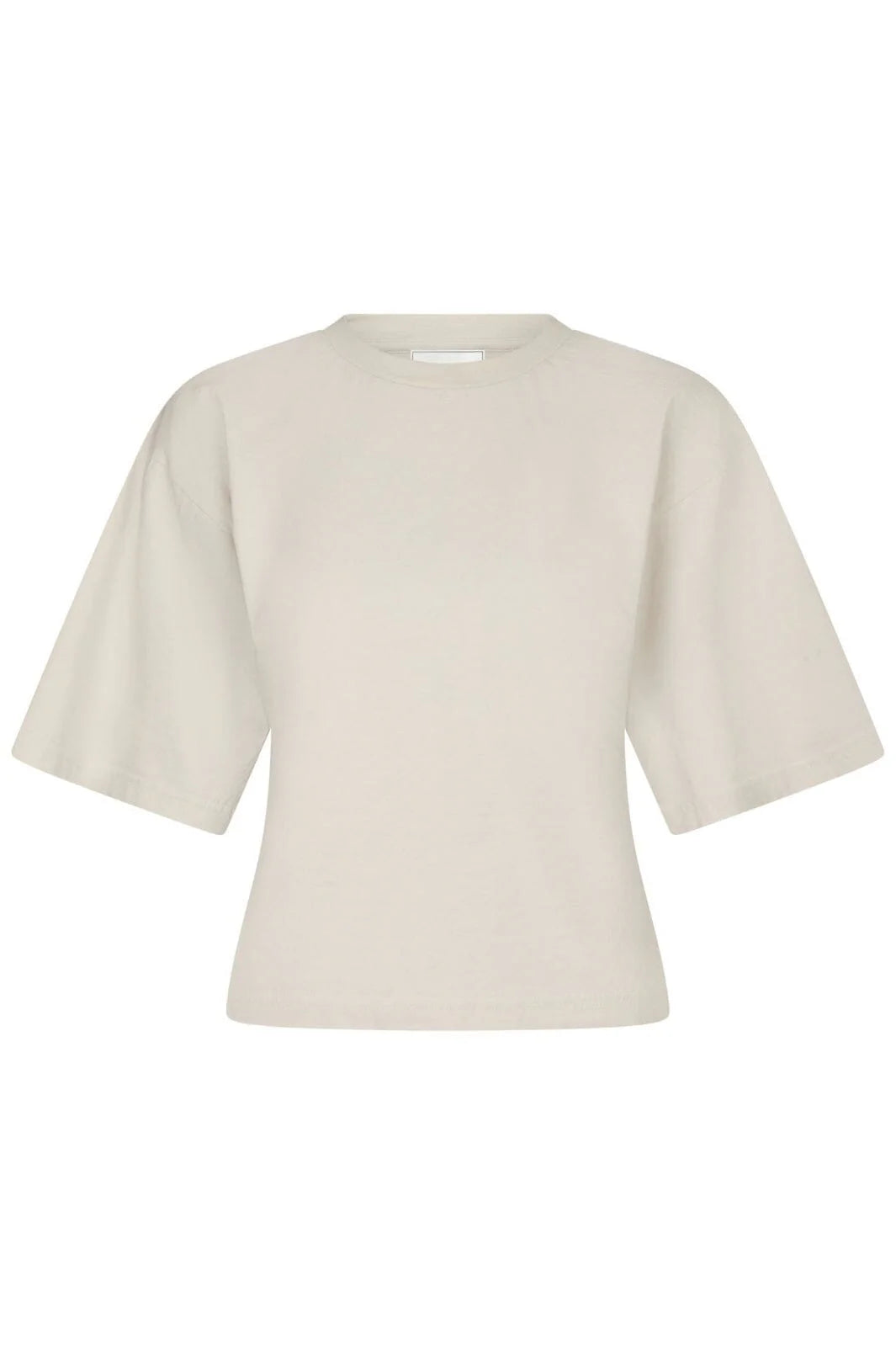 chwarzes T-Shirt von Neo Noir mit boxy Passform. Das T-Shirt hat einen runden Halsausschnitt und kurze Ärmel. Die schwarze Farbe macht es einfach, mit anderen Farben zu stylen.