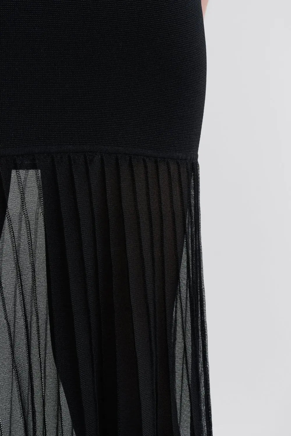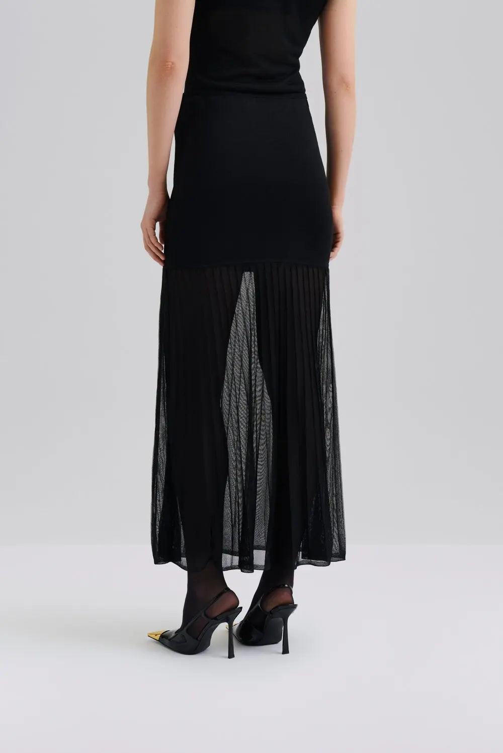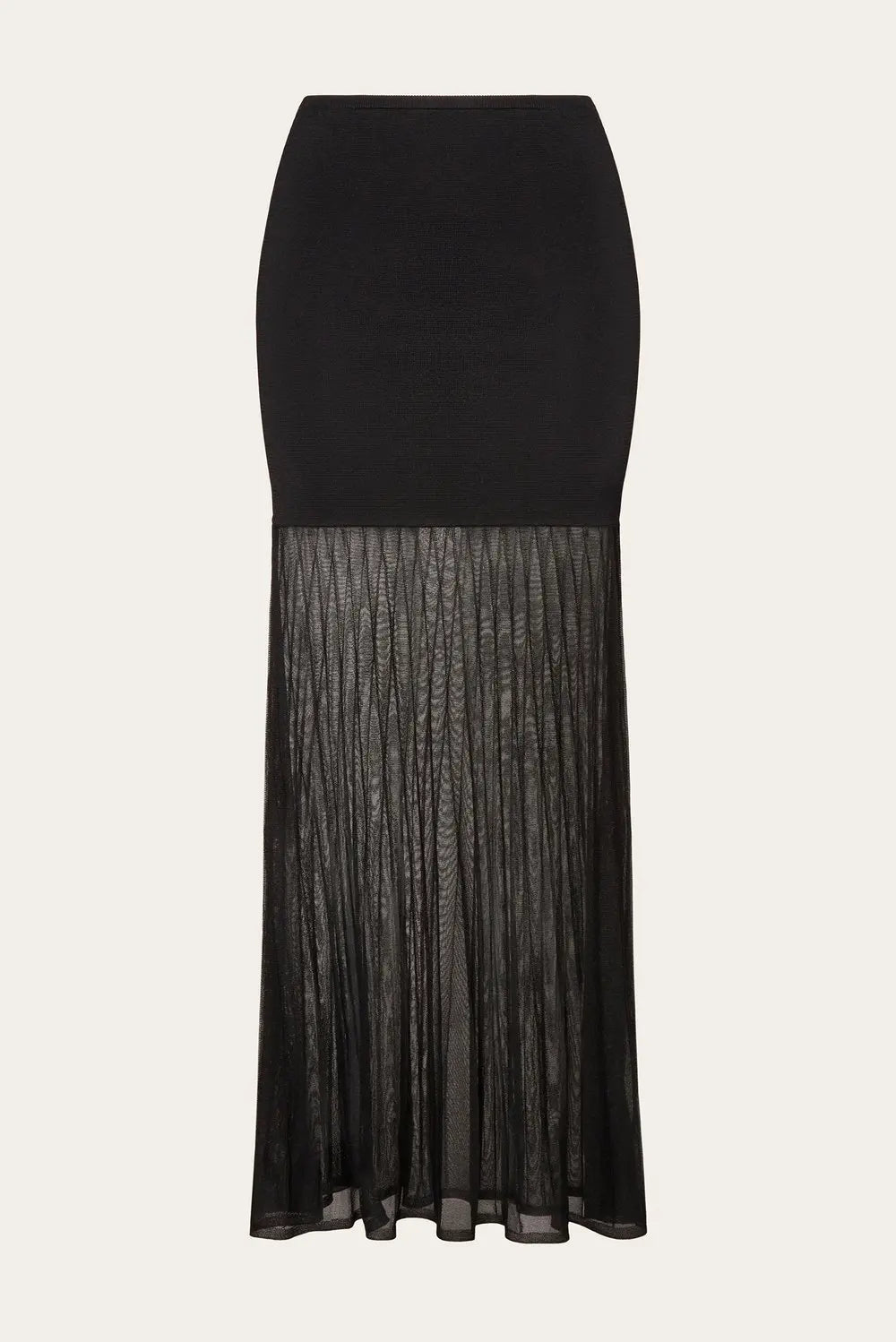 Strick-Maxirock mit tiefer Taille und durchsichtigem Rockteil.