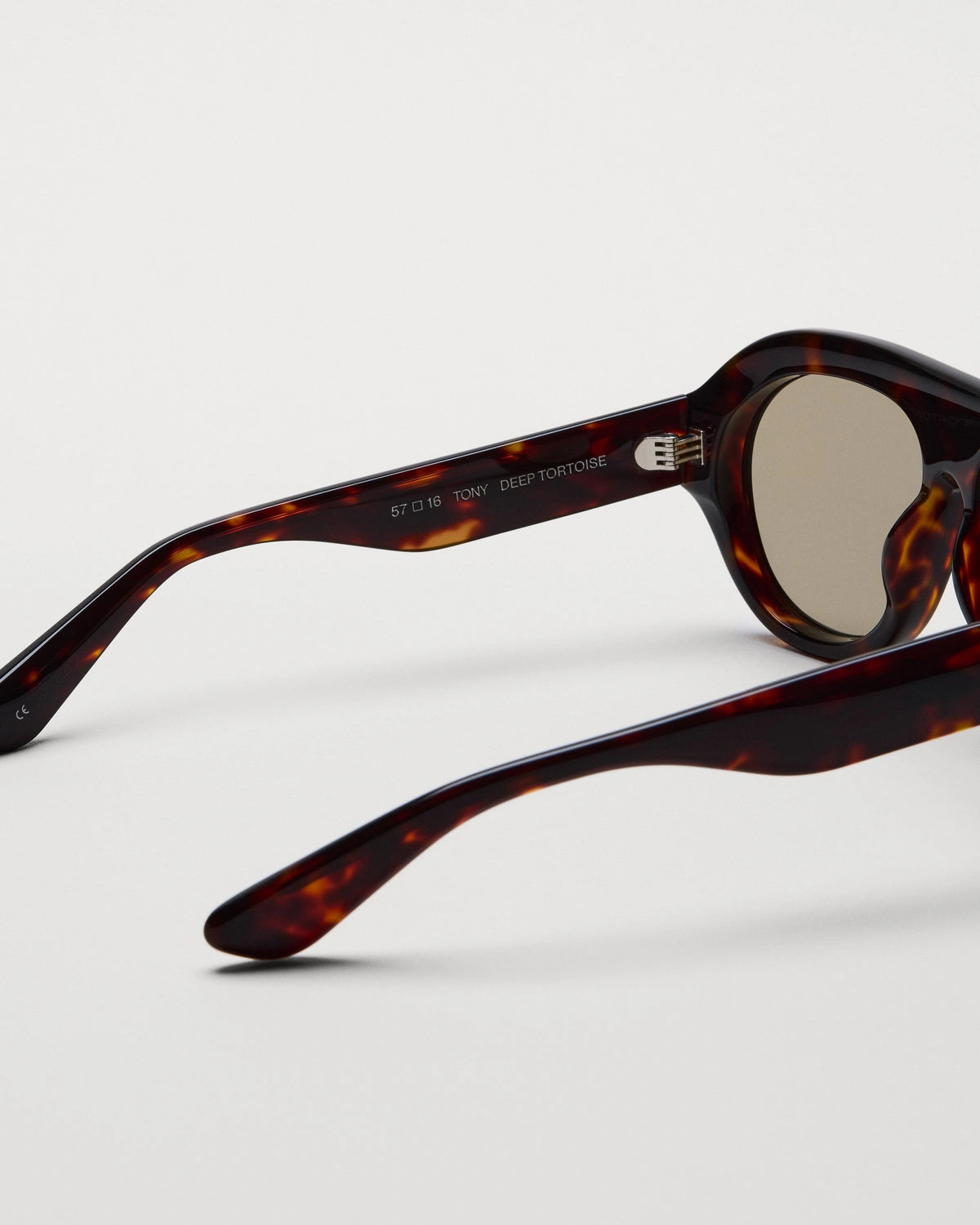 Tony ist eine kühne Navigator-Silhouette, die Vintage-Formen mit einem markanten Rahmen und Farbkombinationen im Stil der 1970er Jahre neu interpretiert.