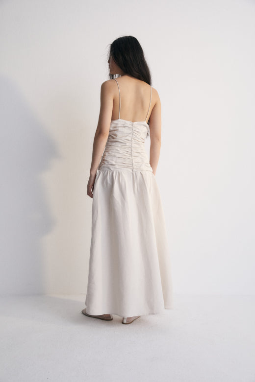 Das lange Kleid Eros ist ein elegantes und dezentes Stück, das mühelose Eleganz ausstrahlt. Durch die Raffung am Mieder vorne und hinten schafft dieses Kleid eine schmeichelnde Silhouette, die sich wunderbar mit dem Körper bewegt. Dünne, verstellbare Träger bieten eine individuelle Passform, während der unsichtbare Reißverschluss an der Seite für einen glatten und stromlinienförmigen Look sorgt. Dieses zeitlose Kleid ist perfekt für legere und formelle Anlässe und vielseitig genug, um je nach Anlass elegant oder leger getragen zu werden.