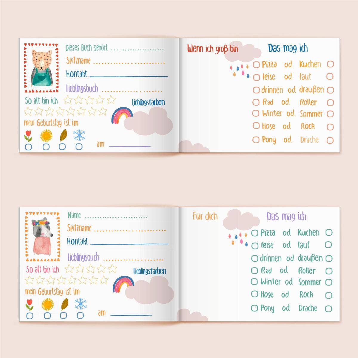 Buch *Tierkinder* mit Platz für 25 Freundinnen und Freunde auf 56 Innenseiten.