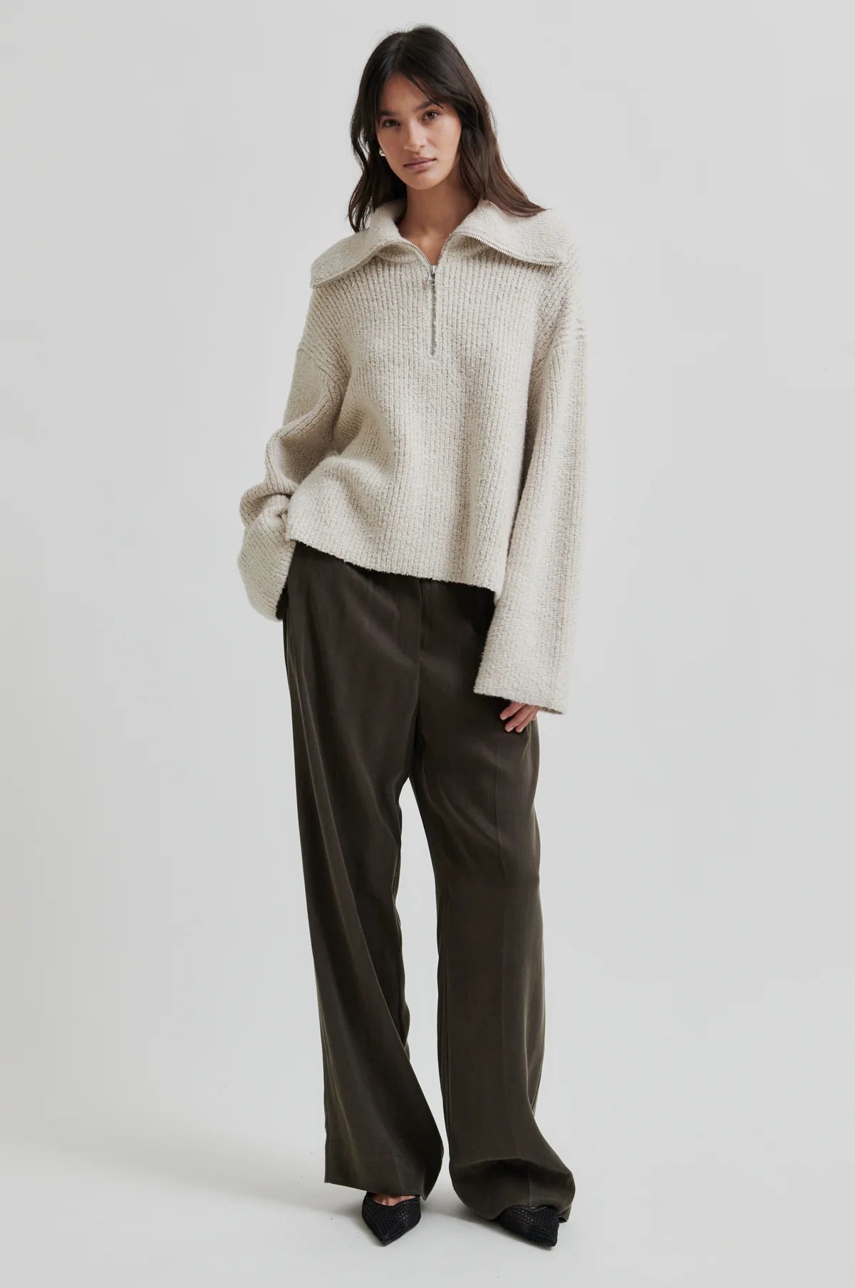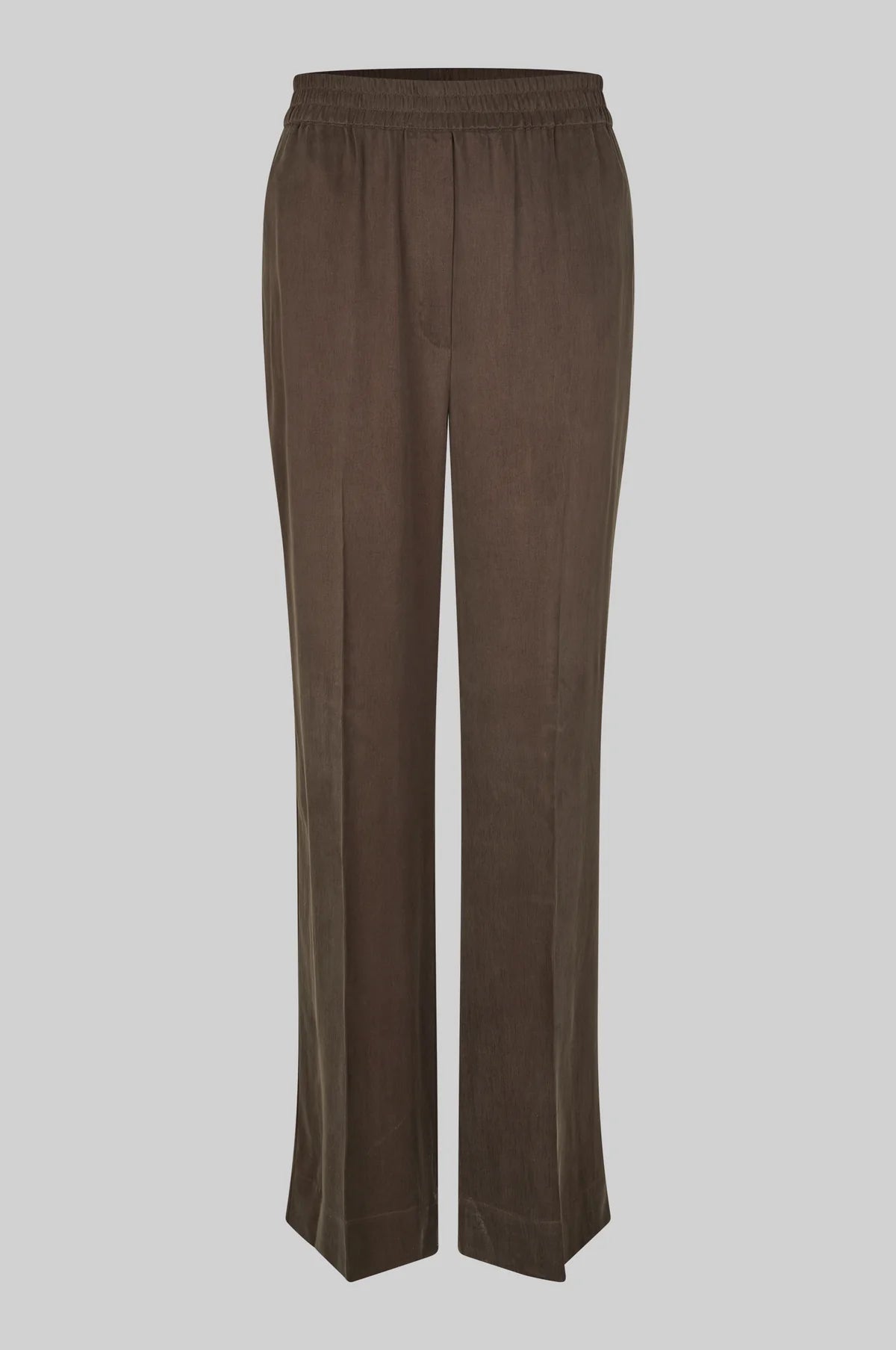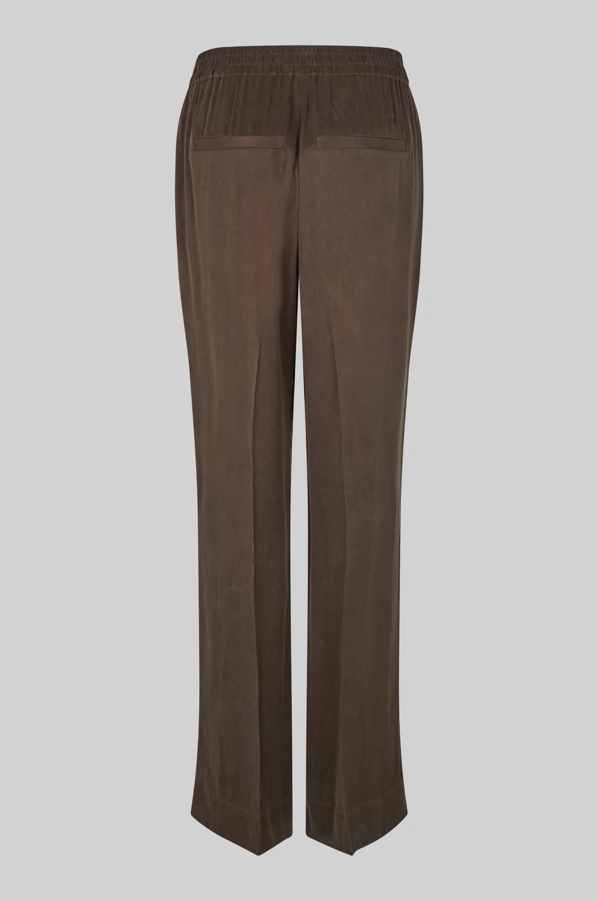 Second Female Hose mit fließender Passform. Die Hose ist aus einem ultraweichen Cipro-Mix in fließender Qualität gefertigt. Mit verdecktem Gummibund und dekorativem Hosenschlitz. Zwei verdeckte Taschen in den Seitennähten und zwei dekorative Taschen auf der Rückseite. Normale Taille mit entspanntem, geradem Bein.