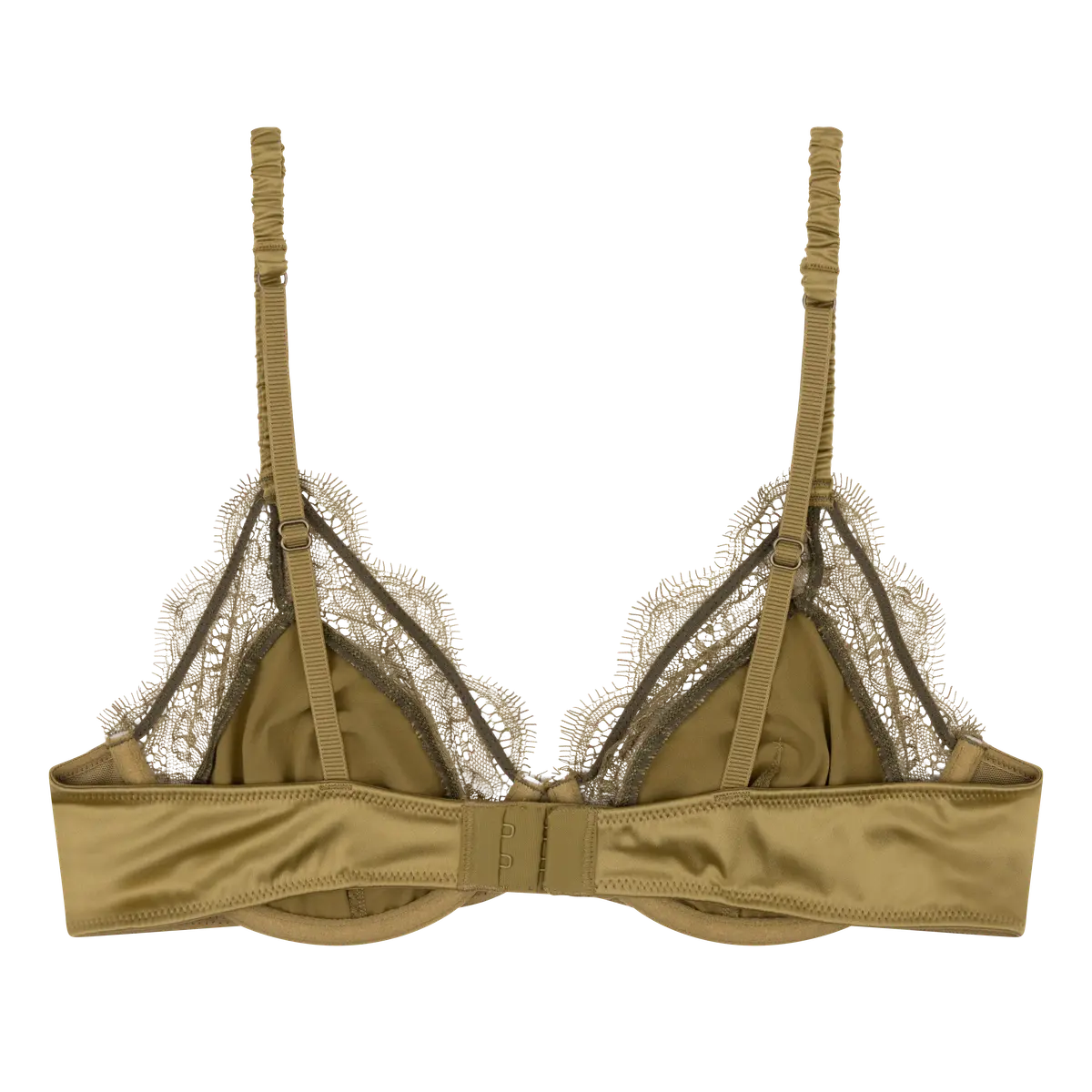 Der BH ist aus Satin gefertigt, der sich weich auf der Haut anfühlt.