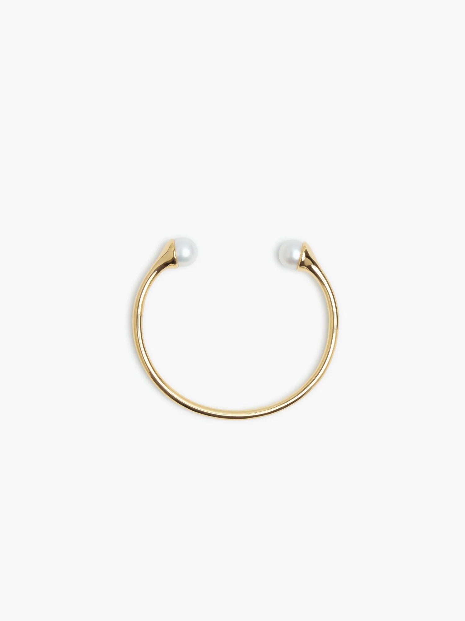 Das Lumora-Armband aus 925er Sterlingsilber schmiegt sich elegant um das Handgelenk und wird von zwei zarten Süßwasserperlen gekrönt. Ein klares, skulpturales Schmuckstück, das Stärke und Sanftheit in einem raffinierten Design vereint.