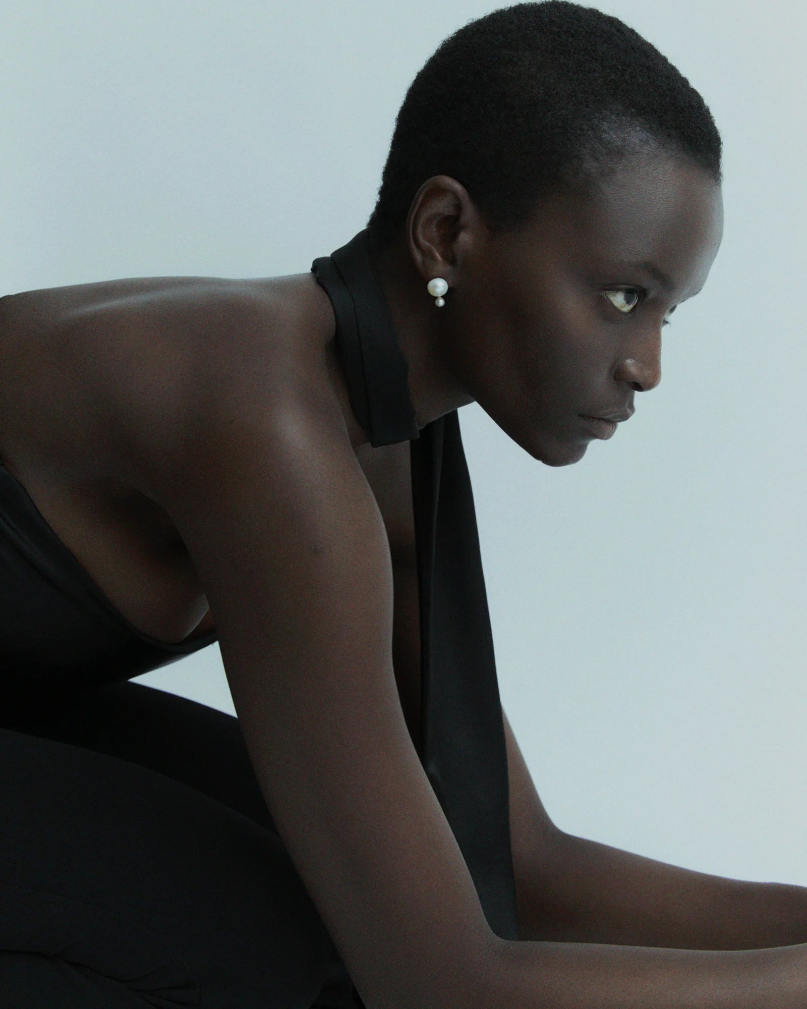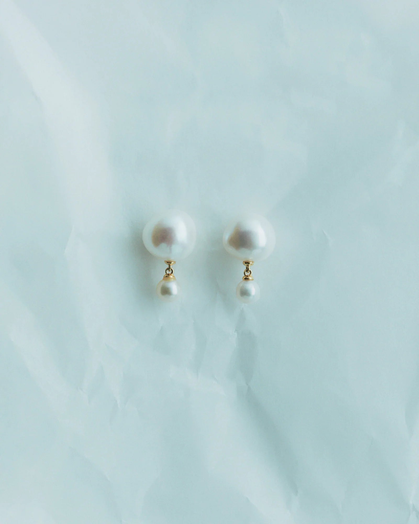 Dieser Ohrring kombiniert eine auffällige Süßwasserperle am Ohrläppchen mit einer kleineren direkt darunter – ein schlichter Kontrast, der der zeitlosen Silhouette eine coole, moderne Note verleiht.