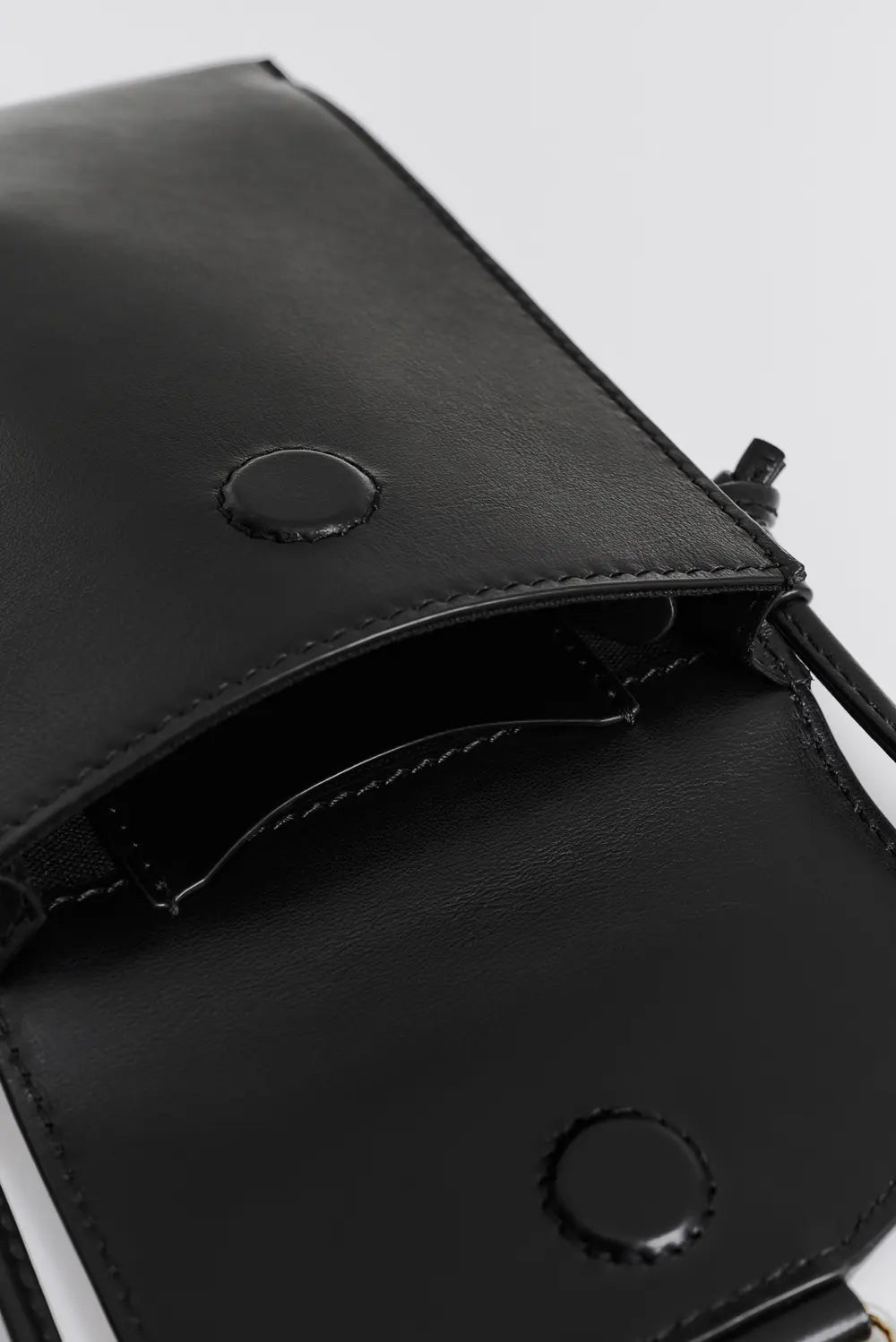 Handytasche aus geschmeidigem italienischem Leder mit feinem, verstellbarem Riemen und Malina-Monogramm.