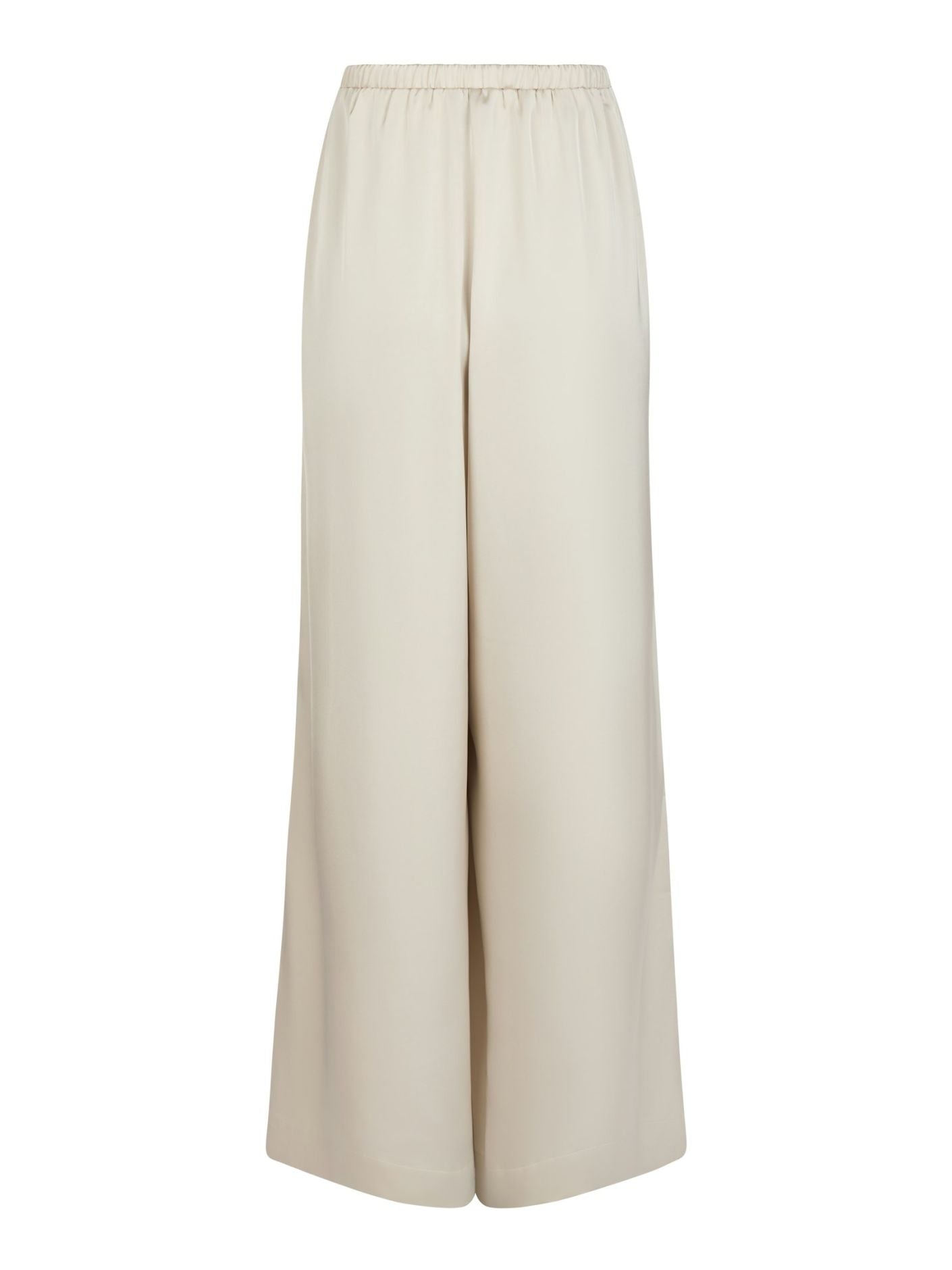 Elegante Hose mit weitem Bein und schmalem, elastischem Bund für einen bequemen Sitz. In schöner Satin-Qualität. Die Taille ist mittelhoch.