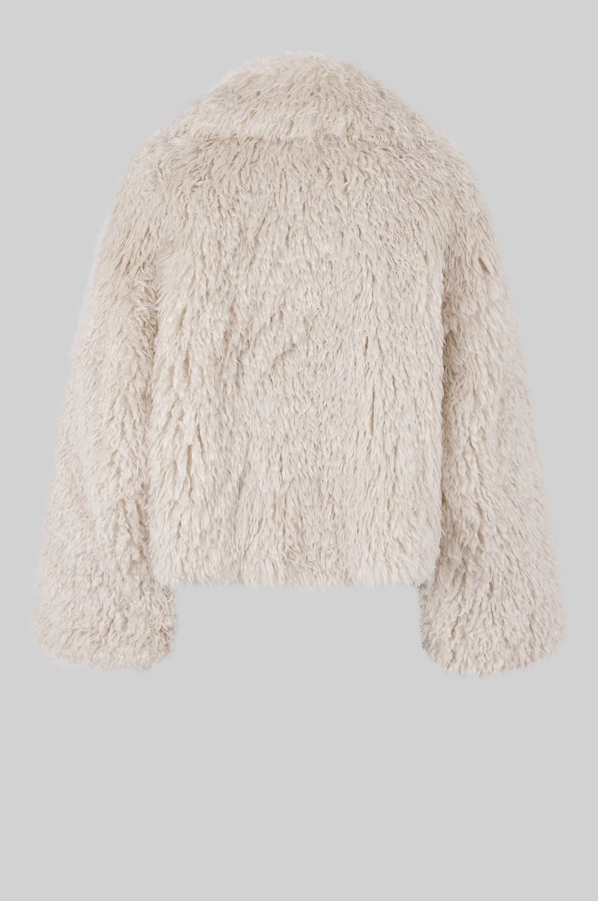 Shaggy-Jacke von Second Female. Die Jacke ist aus ultraweichem Stoff mit zotteliger, schafähnlicher Textur gefertigt. Mit verdecktem Haken- und Ösenverschluss vorne und zwei verdeckten Taschen. Vollständig gefüttert. Normale Passform mit entspannter, leicht kastiger Silhouette.
