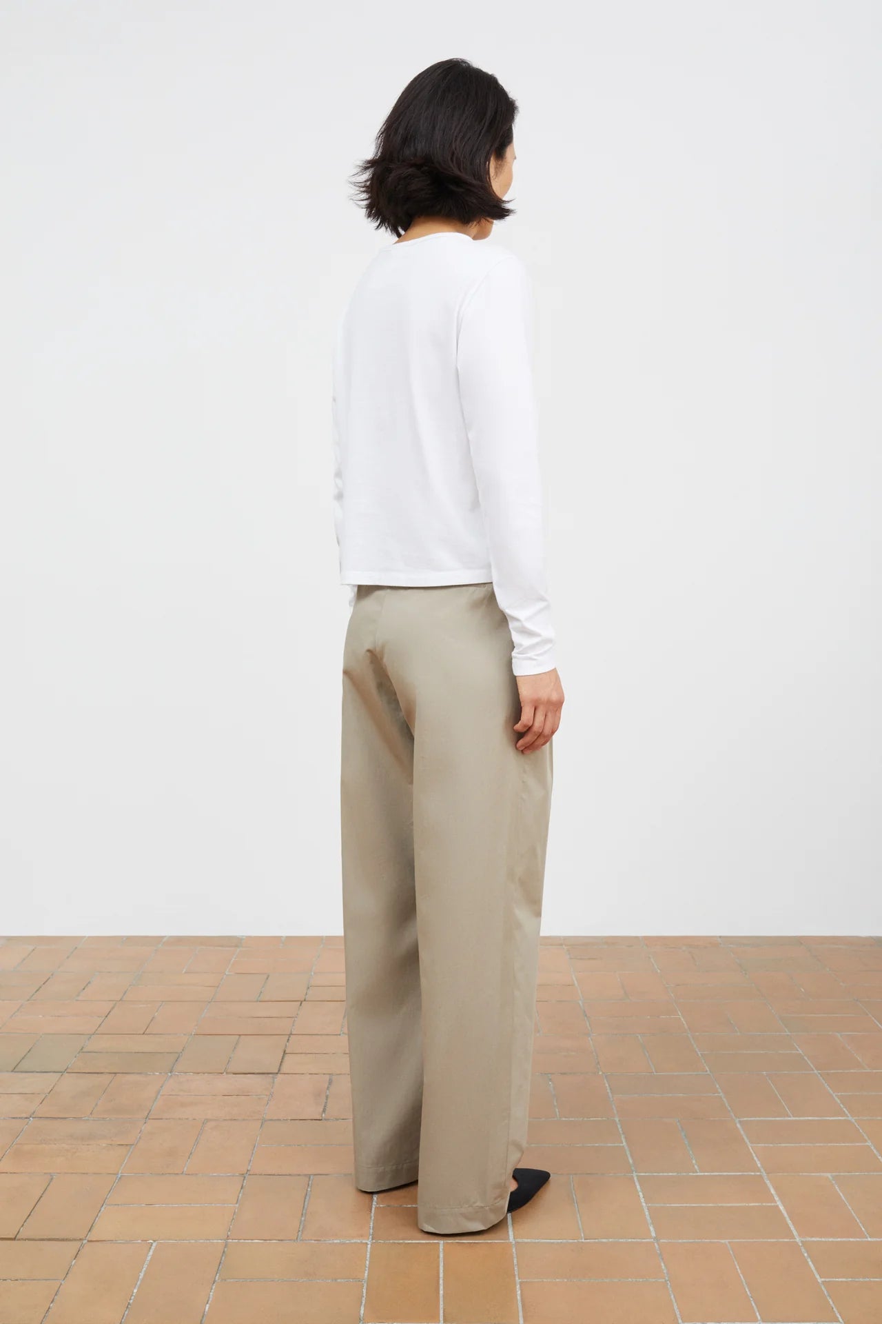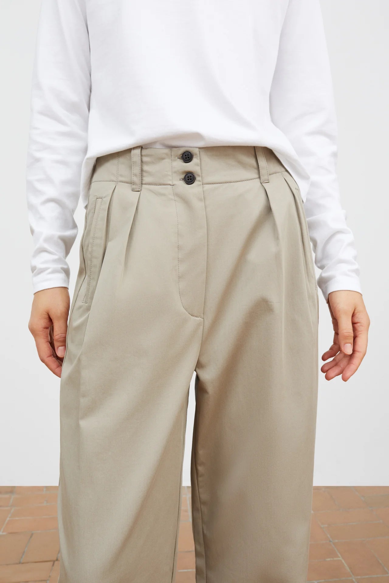 Painter Trousers ist eine weite, von der Herrenmode inspirierte Hose im lässigen Look aus Baumwolltwill. Sie hat eine halbhohe Taille, Bundfalten vorne, die dem Schnitt mehr Weite verleihen, und wird mit zwei sichtbaren Knöpfen geschlossen. Sie verfügt außerdem über Seitentaschen und eine Leistentasche hinten ohne Eingriff.