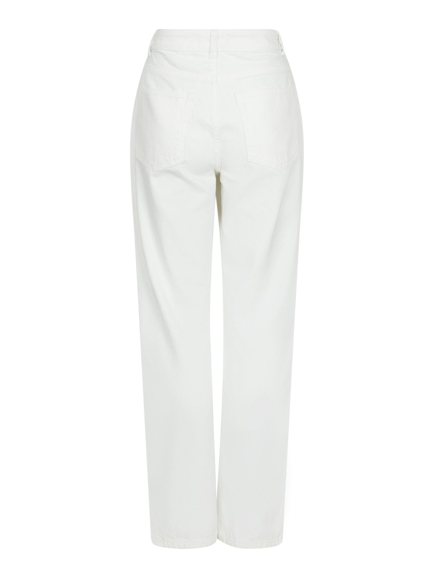 Jeanshose mit mittlerer Taille und Reißverschluss und Knopfverschluss vorne. Die Hose hat weit geschnittene Beine und eine verwaschene Optik.