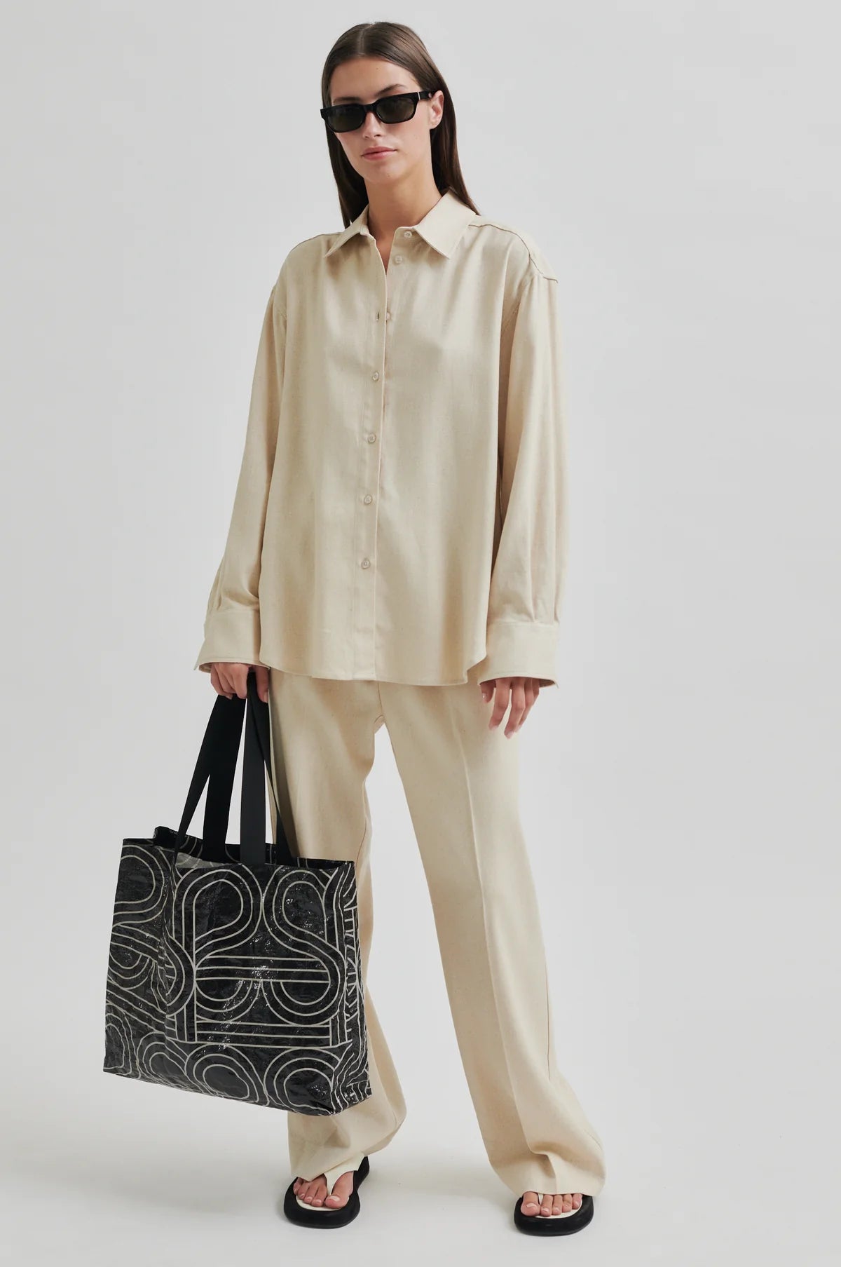 Einkaufstasche „Second Female“. Die Tasche ist aus robustem Polypropylen gefertigt und verfügt über einen Allover-Logo-Aufdruck und Gurtgriffe.